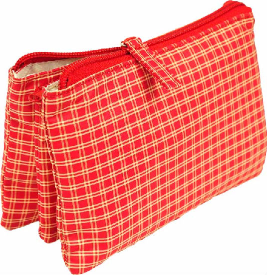 3 compartments cosmetic pouch made of nylon with checker pattern (no PVC used).
