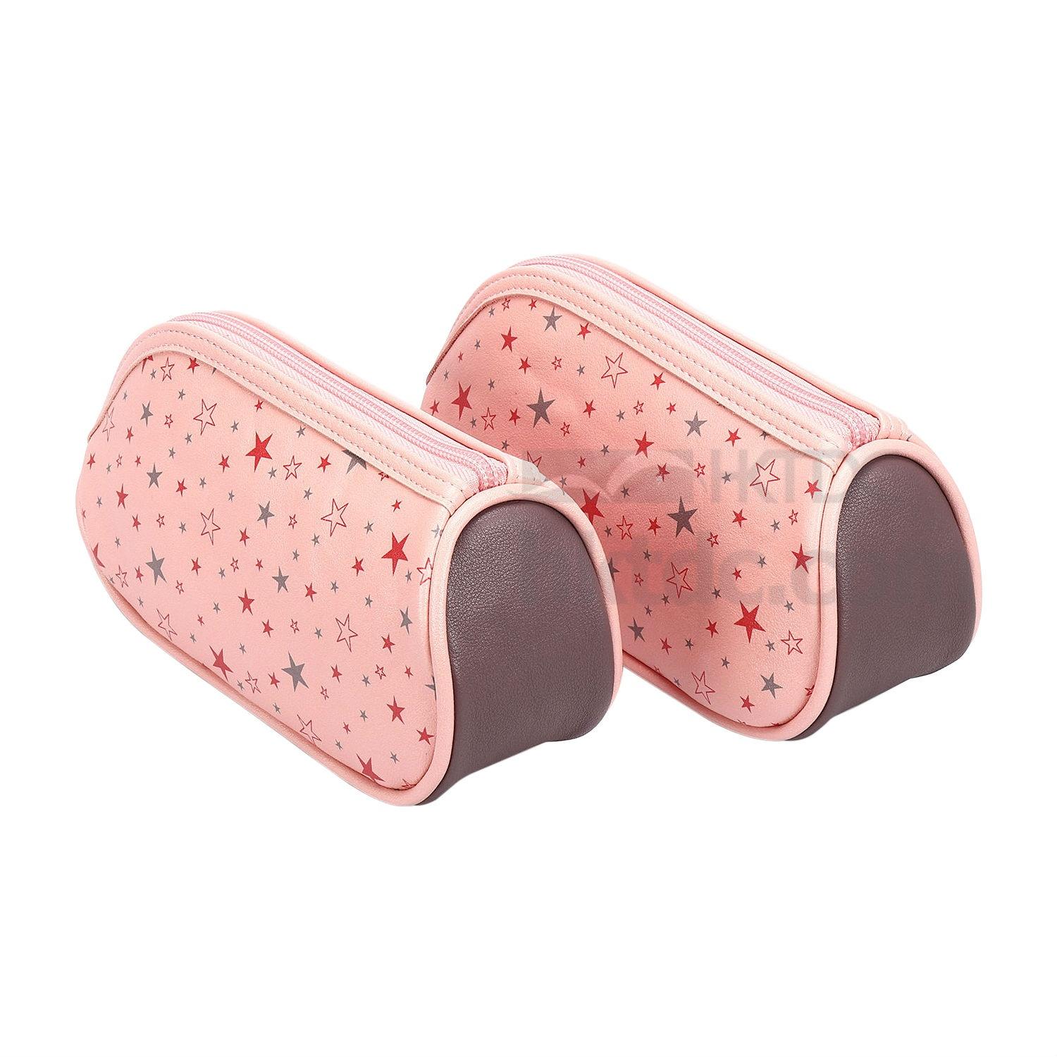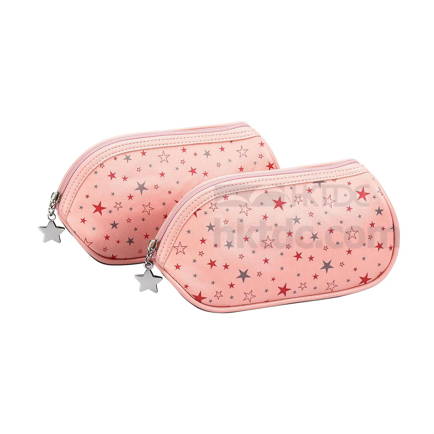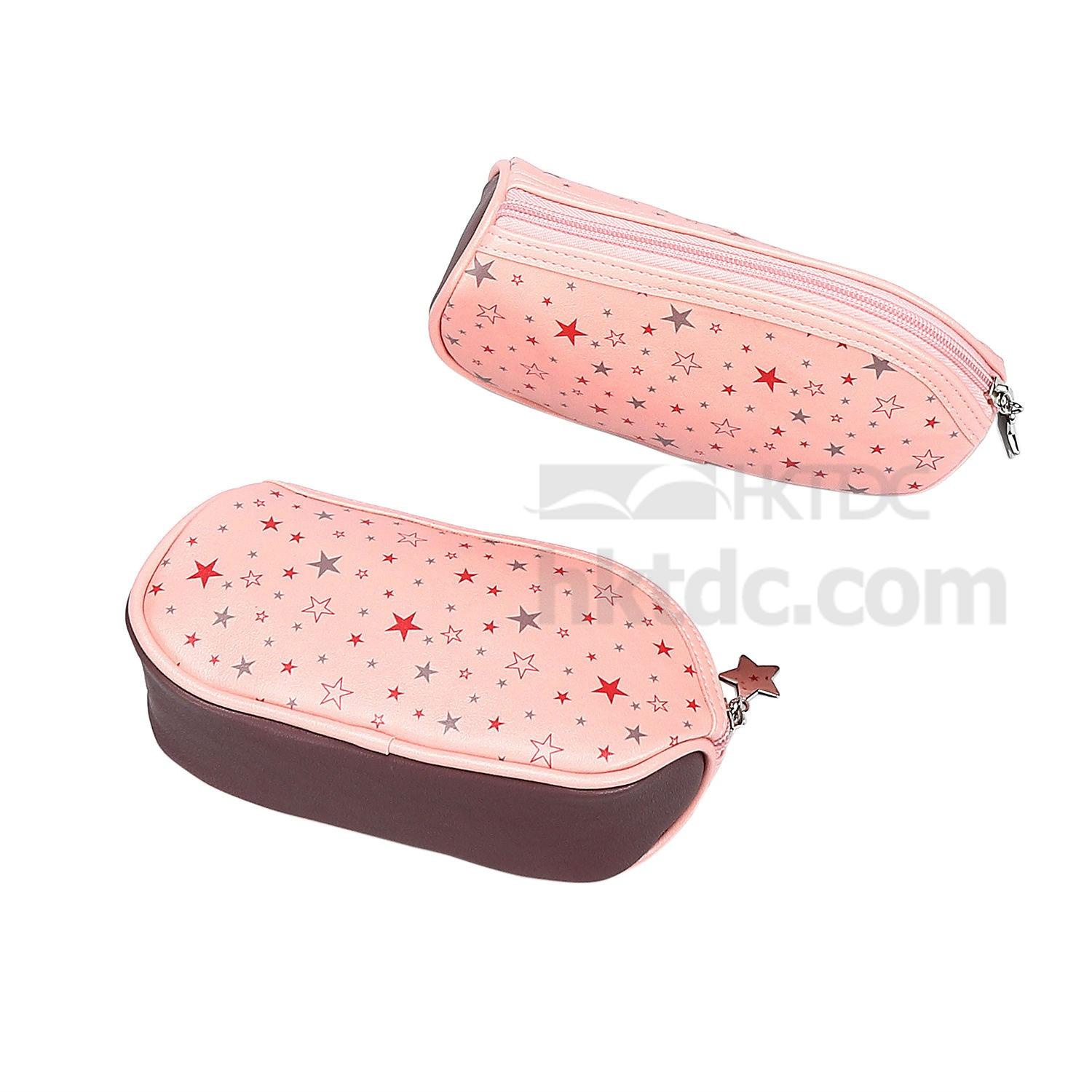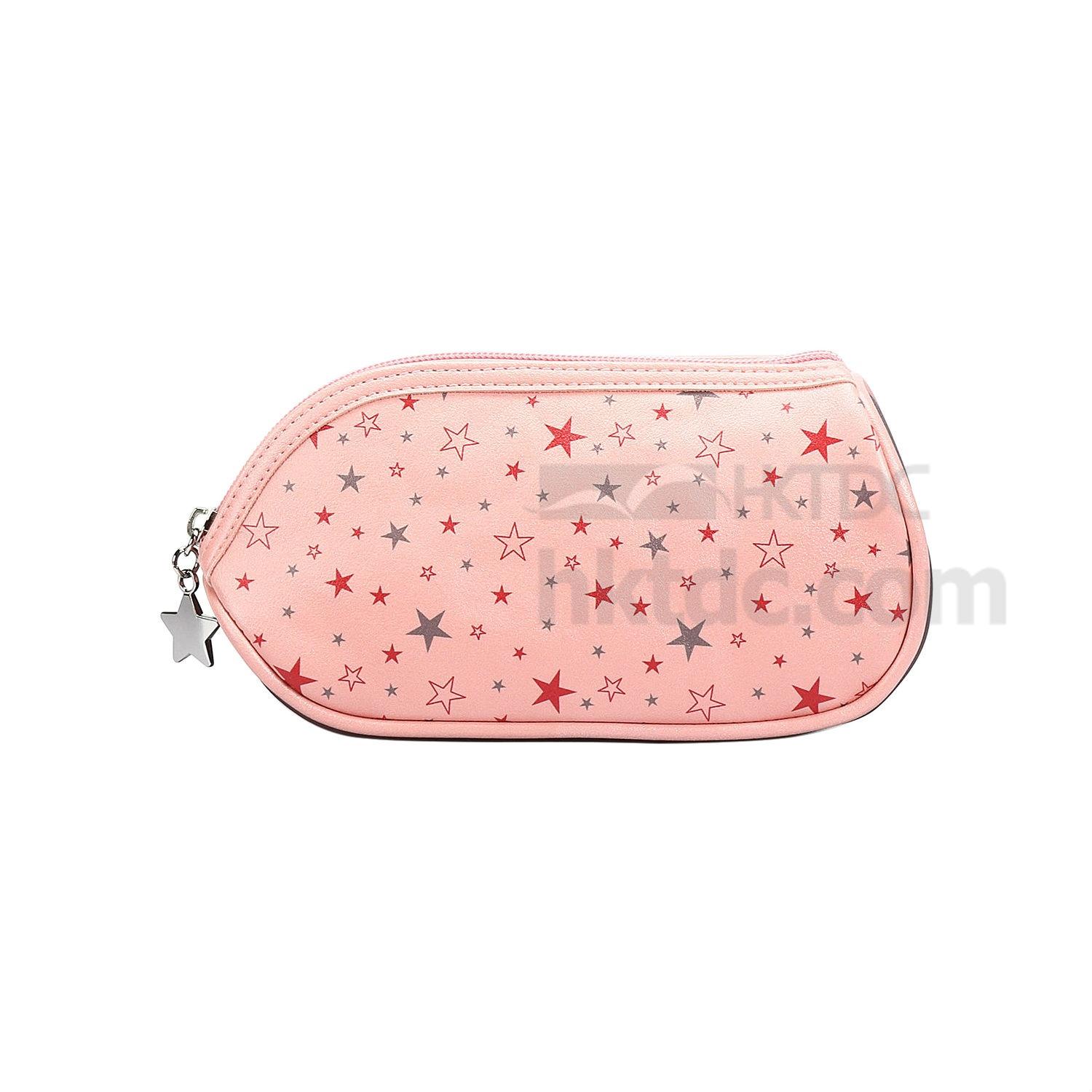 Perfect for toting everything you need for makeup wherever you go, this contoured cosmetic bag supported by a board base features a distinctive shape and spacious interior. Eye-popping star pattern highlights the bag with a saucy touch. A star-shaped puller completes the zipper with a finishing touch, offering a convenient and secure closure with added style.