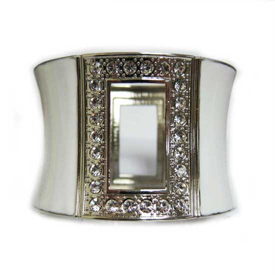 The costume bangle looks presentable with its broad design. It features a silvery embellishment in front paved with glittery accents. The bangle lines your wrist with great charm and elegance.