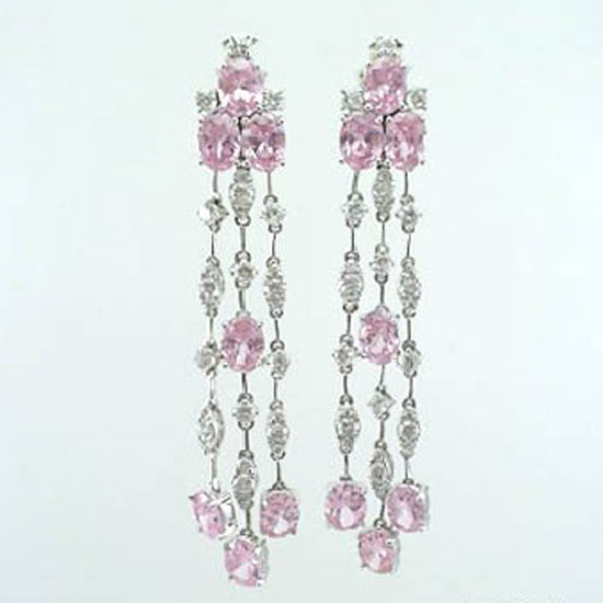 Each of these stunning earrings is designed with four dangling strands sparkling with white and pink stones. They showcase excellent craftsmanship with refined details. The gorgeous earrings add irresistible charm to any evening dress.