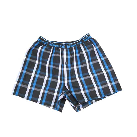 Displayed is a pair of boxers featuring a classic plaid pattern. Made of 100% cotton, these boxers are soft and comfortable. This pair of boxers is suitable for both men and boys.