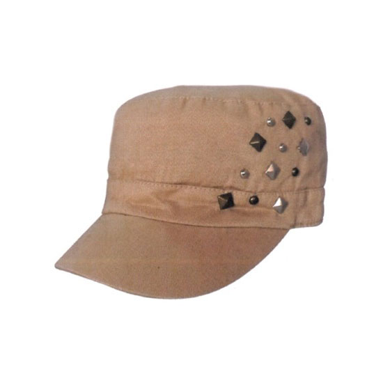 This is a cotton cap that comes in allover brown for an elegant look. The shiny rivets add a touch of style to the whole piece. This well-designed cap is soft and comfortable to wear.