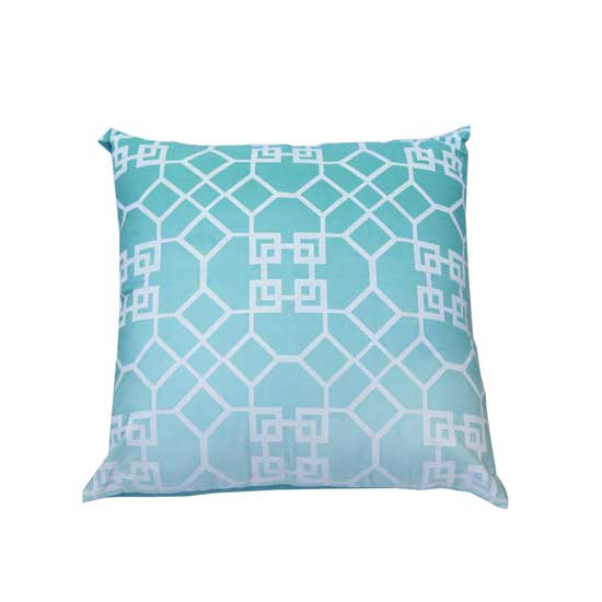 This blue cushion is accented with white geometric patterns on its cover. The cotton cushion is ultra soft and comfortable to the touch. It makes a wonderful addition to your living room and bedroom decor.