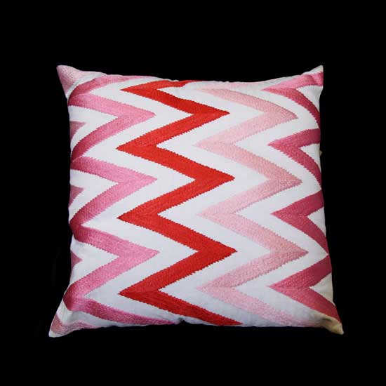 This square-shaped cushion features wave patterns in red and pink colors. The soft cotton cushion allows you to comfortably hold, lean against or rest on it. The functional and stylish cushion can be used at home, the office or in your car.
