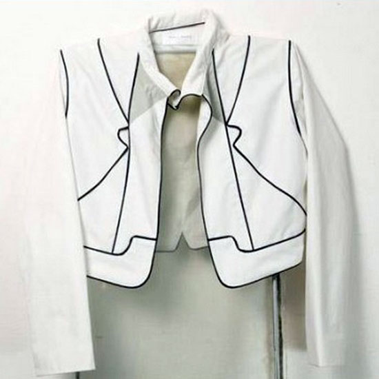 This is a short jacket with a stylish and fashionable design. It comes with a two-toned design in white and black. This long-sleeved jacket is made of 100% cotton for a comfortable touch.