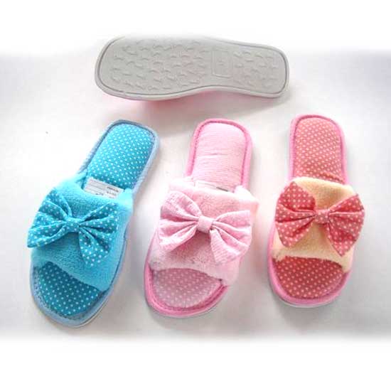 This slipper appeals to ladies with its beautiful and lovely appearance. It is made of full cotton in a bright color with white dot patterns. The cute bow on the upper adds a touch of elegance to this stylish slipper.