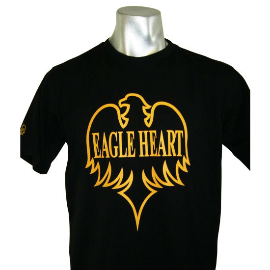 A prominent eagle heart logo highlights this black tee, which boasts an outline design, where the big yellow logo forms a great contrast with the black tone of the garment. Made 100% of cotton, the tee offers a great feel on the skin and possesses a strong ability to absorb sweat, which makes it an ideal choice to wear in summer.