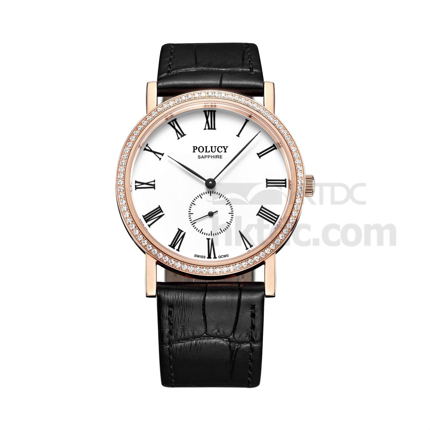 Anything sparkling will instantly take a watch to an upmarket level—so as this timepiece with stones set along its round bezel. Powered by a Swiss Ronda quartz movement, the dial offers straightforward and precise time-telling function with its Roman hour markings and two slender leaf watch hands.