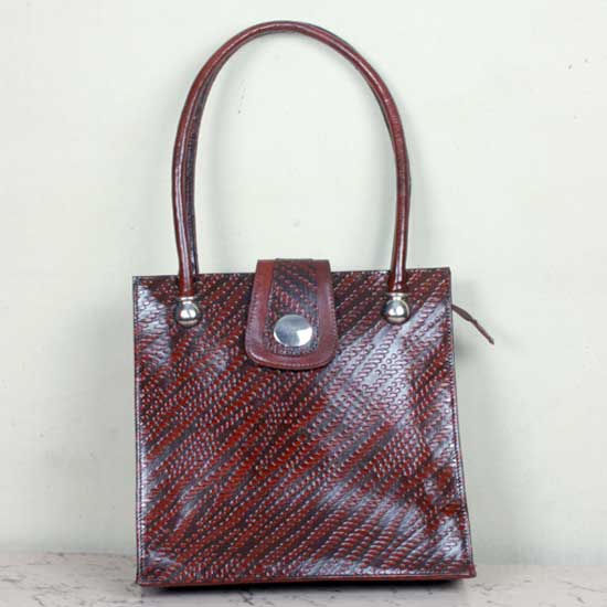 This photographed cow leather handbag features a glossy finish to enhance attractiveness. Its zebra-like striped pattern is elegant yet classy. This cow leather handbag is a stylish piece to pair with fashionable blouses.
