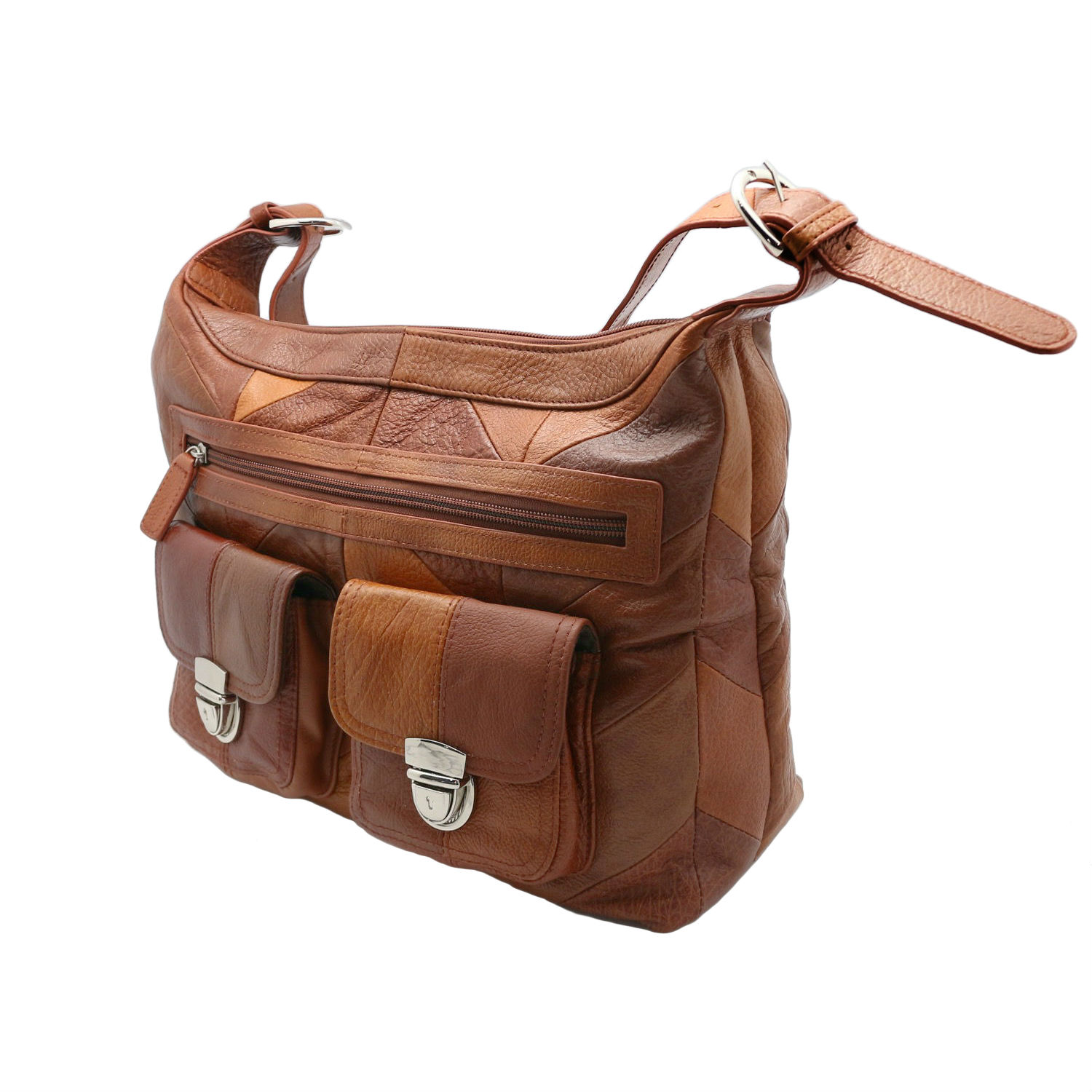 Giving generous space to store your essentials, this cow leather handbag flourishes in the minimal aesthetics of patching inspire. It depicts an adjustable strap of buckle finish, taking on a chic appeal with domineering presence to boast contemporary ensembles. The top zip fastening further ensures effortless carry for everyday commute.