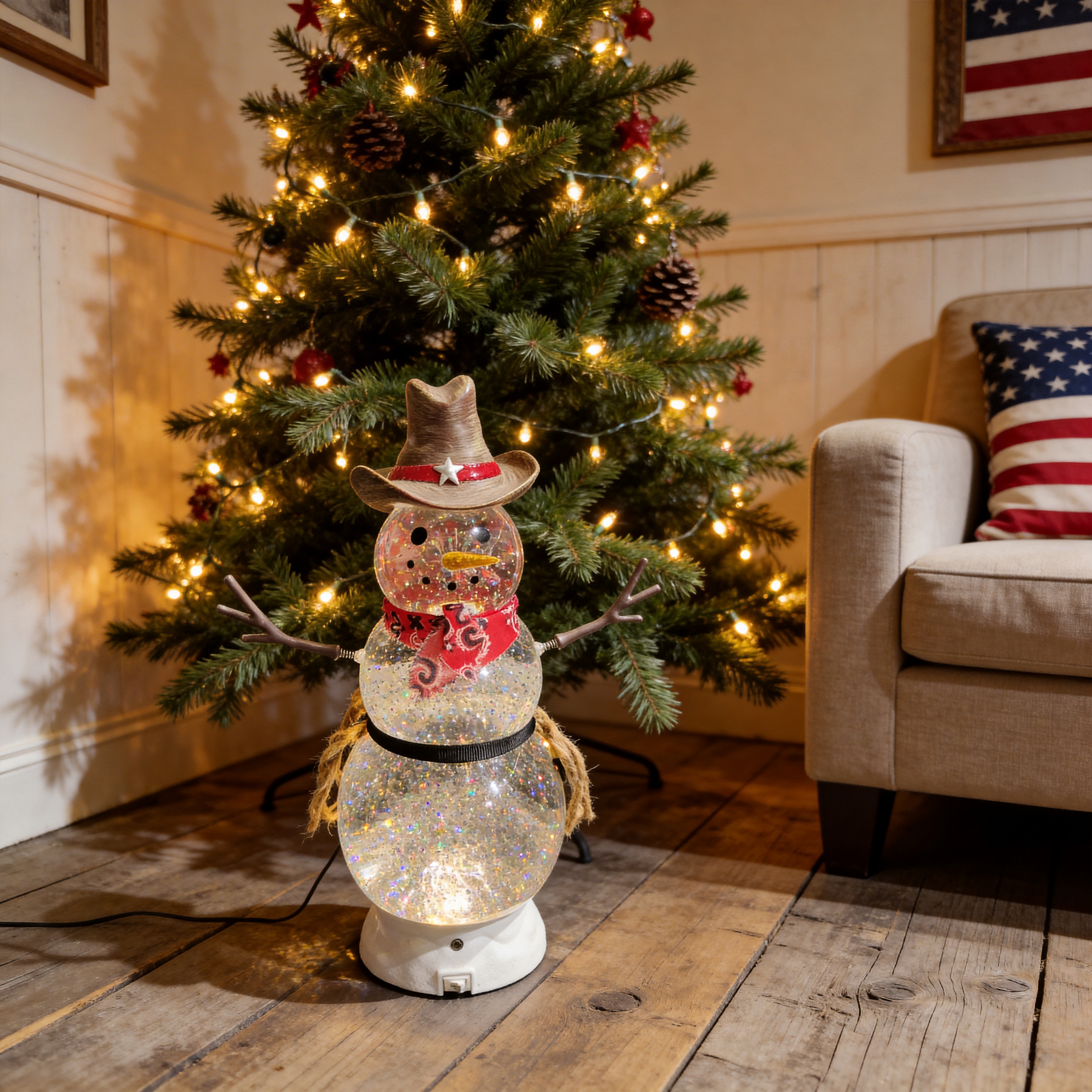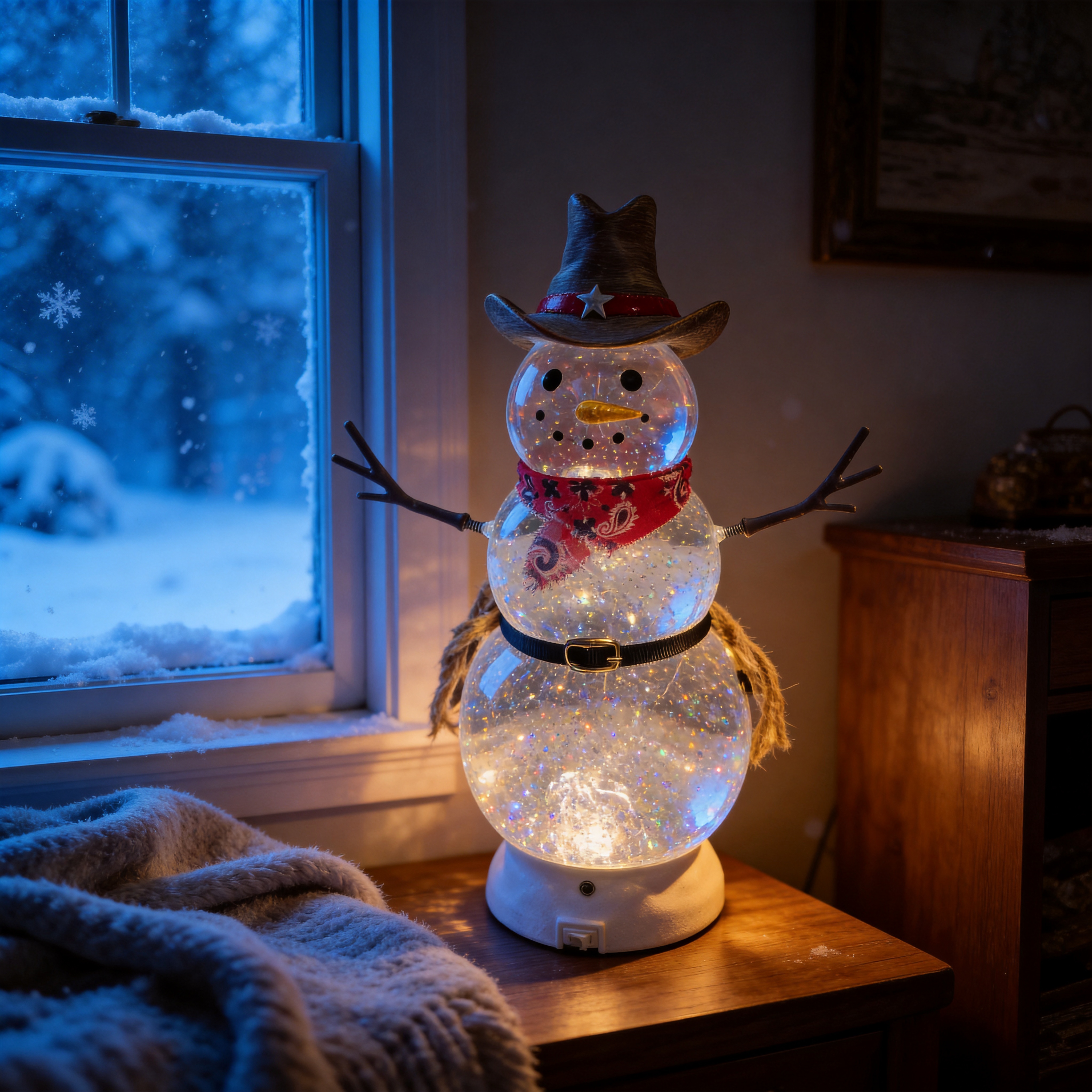 Unique Cowboy Design – Snowman with western hat and bandana, fun and eye-catching