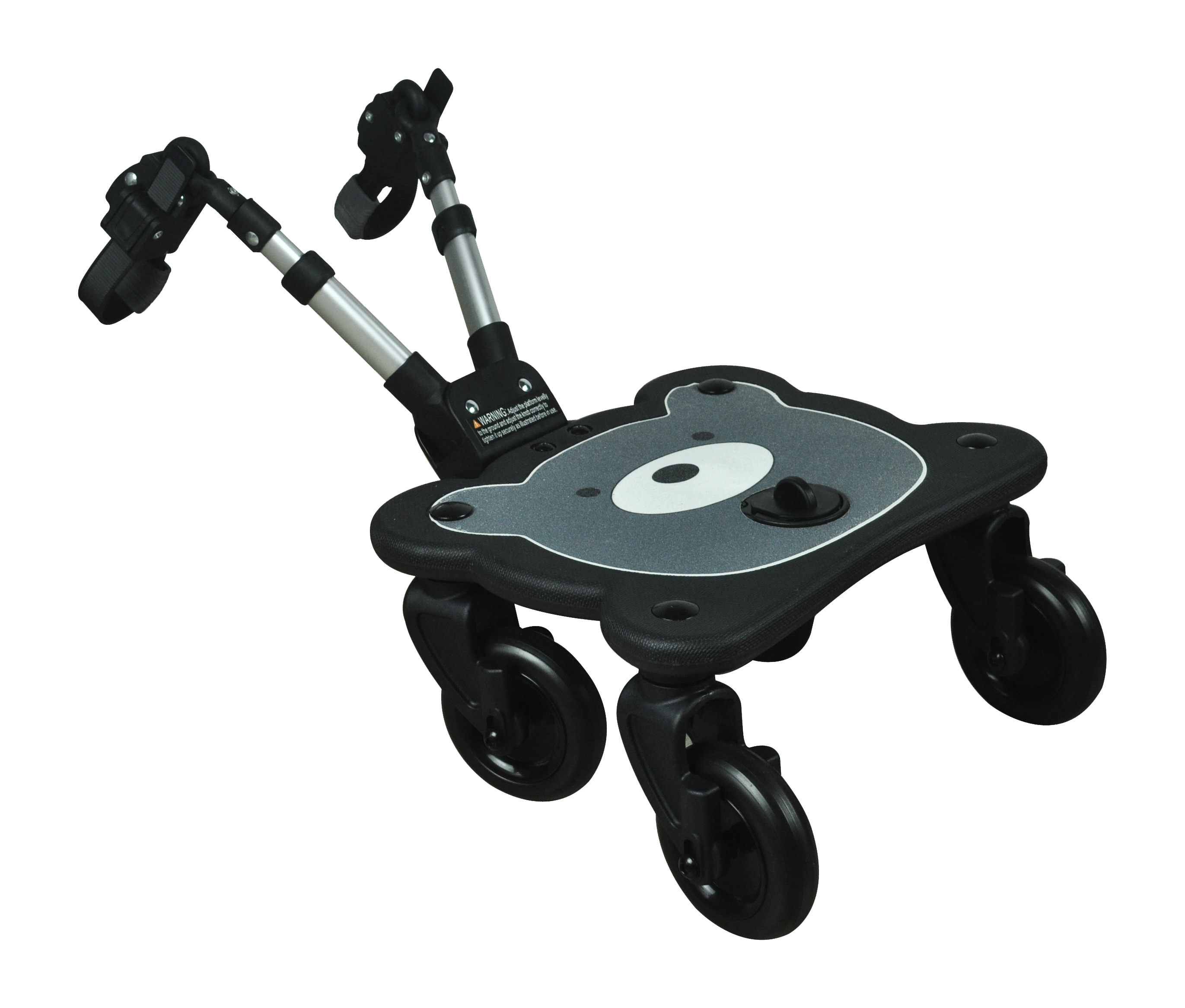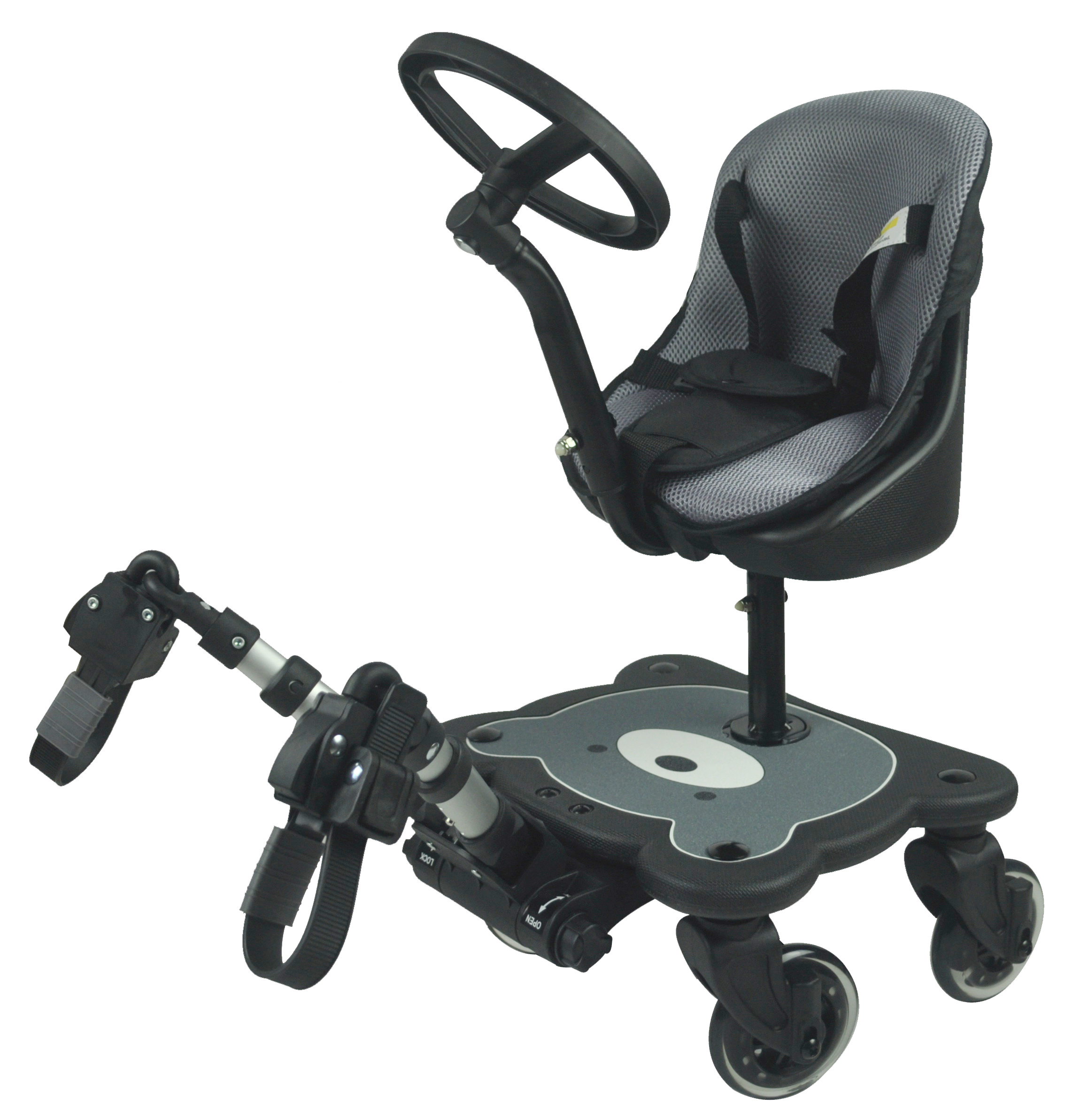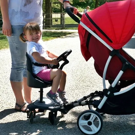 *2-in-1 standing & seating platform fitting most strollers & buggies with 2 rear legs