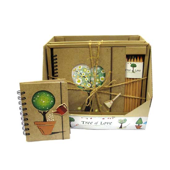 This craft paper gift box includes a spiral drawing book, pieces of white paper and 12 colors of pencils. It is accented with an eco-friendly themed print for a sense of attractiveness. Meticulously packed, this craft paper box makes an ideal gift solution for your friends.