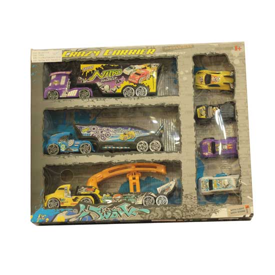 The car carrier toy is made of ABS texture in high durability. The fantastic car carrier is designed to pick up and deliver the ready four colorful cars. This toy allows your child to deliver the vehicles wherever they would like to go.
