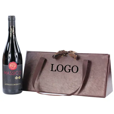 Creative Triangle PU Leather Portable Folding Packaging Box Wine Champagne Handbag Gift Boxes with Ribbon Handle