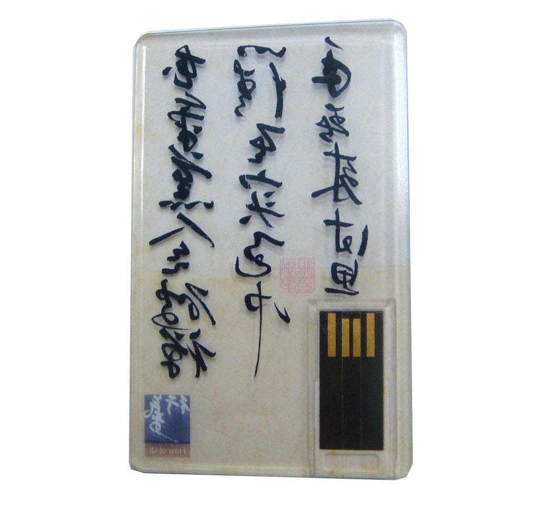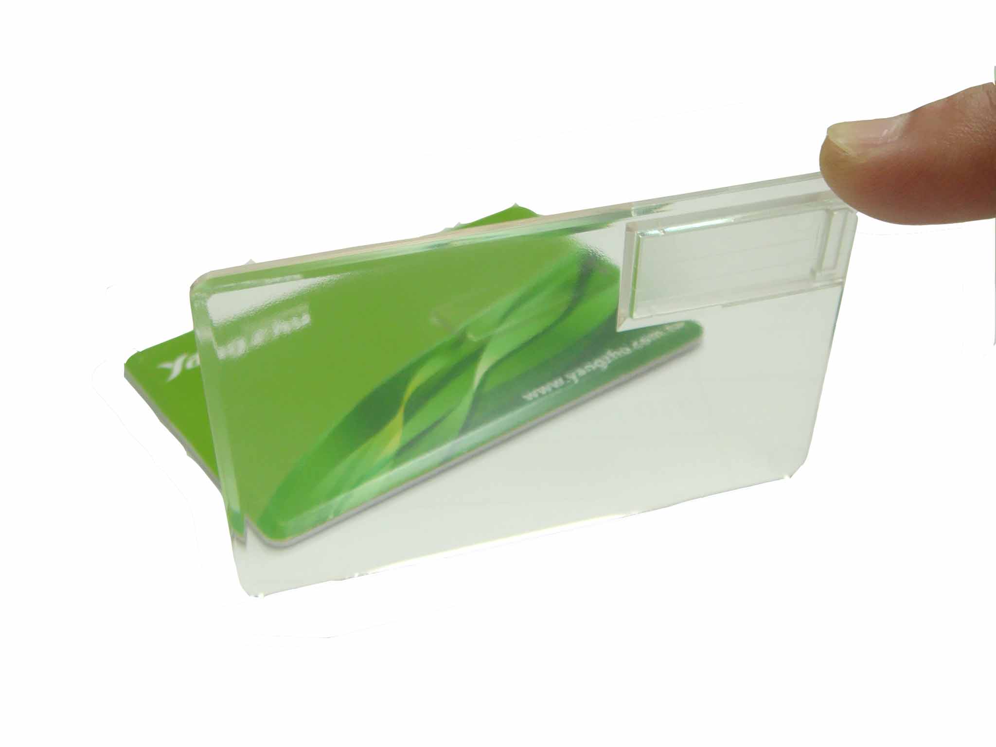 This USB flash drive features a unique credit card shaped design with a built-in USB connector. The refraction of light through its transparent surface provides a clear view of your customized logo. The stylish USB flash drive can be used as a business electronic name card which directly represents a generous and innovative image.