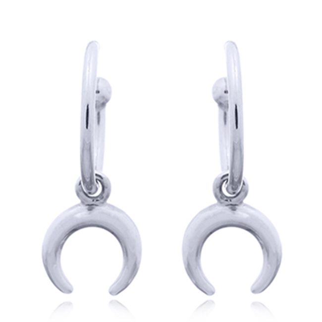 Crescent Moon Hanging Silver Hook Stud Earrings