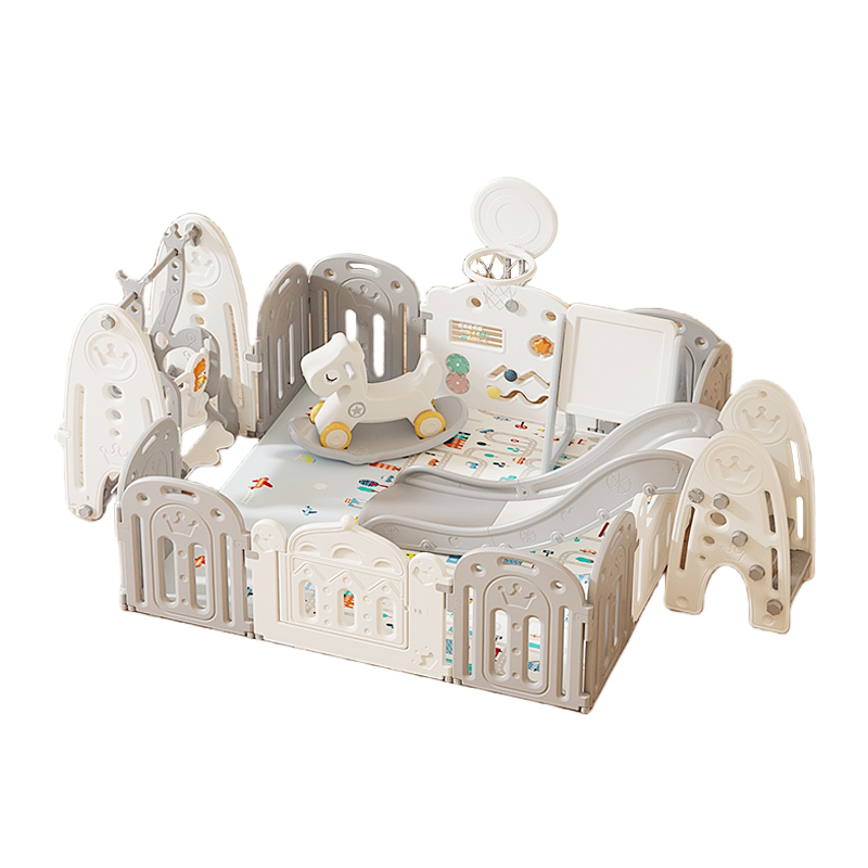 Crown themed playpen with slide and swing set Baby Playpen for Homes