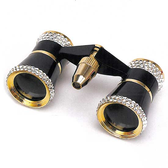 The compact binoculars feature a sturdy metal construction with crystal embellishments for a modern look. The gold-plated rims showcase a retro touch. The shimmering crystal binoculars will give you convenience when you need a closer vision.