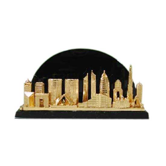 This eye-catching business card stand spotlights miniature landmark building models across the world. The building models are finely made of 24K gold plated metal in a sandblast finishing. The black crystal back panel and base completes the design of this stunning piece.