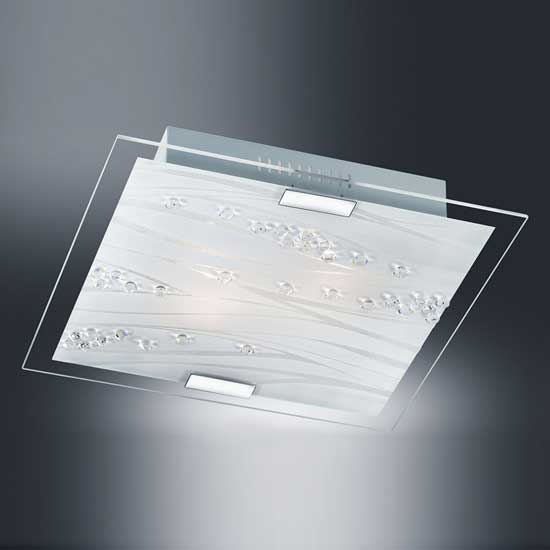 This outlined ceiling lamp is in square shape. The lampshade is accented with glittering crystals for added sparkles. This displayed ceiling lamp is ideal for living room and bedroom use.