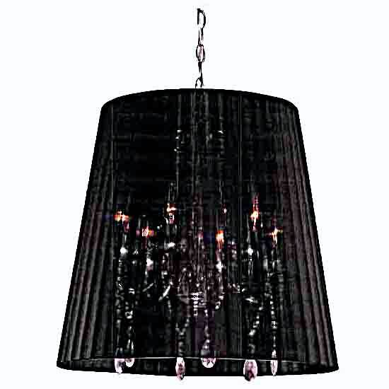 The gleaming crystal chandelier flaunts dangling crystal beads with a black cone lampshade for subtle glamor. The shimmering crystals spruce up the area with a luxurious accent. This pendant chandelier is sure to make a grand entrance.