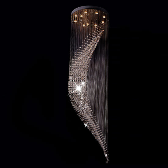 Available is a chandelier with a smooth, fine and streamlined classy design. The exquisite piece comes with sparkling crystals on an asymmetric end. The piece makes an attention-grabber in different venues.