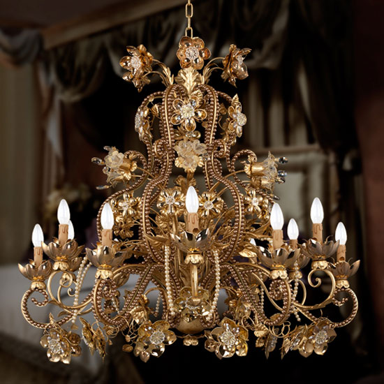 - Material: wrought iron, Murano glass, Swarovski pearl banding and porcelain.