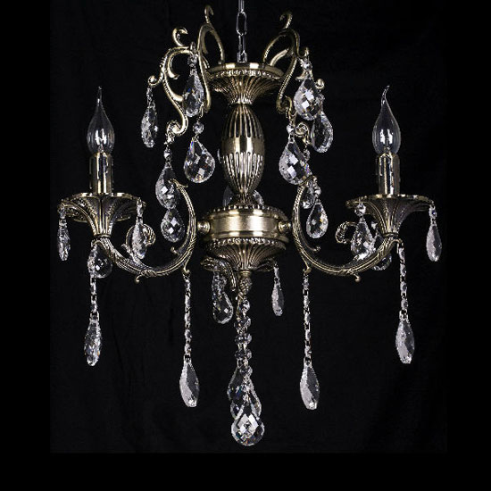 This two-branch chandelier is remarkable for its extravagant design. Dozens of multifaceted crystals are hung from the frame for an air of luxuriousness. Candle bulbs are used to further enhance the gorgeous touch.