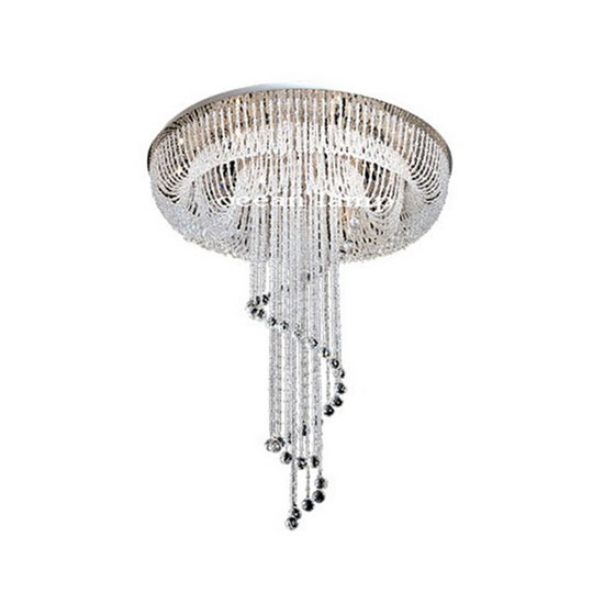 This chandelier features contrasting black-colored crystal beads that come together to form a spiral. The crystals are all made with exquisite craftsmanship. Modest, delicate, and outrageously elegant, this chandelier is the best decorative lamp for villas and hotels.