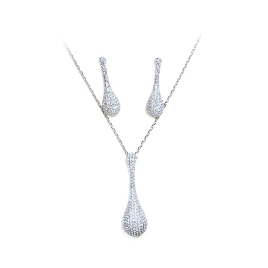 This jewelry set is delicately carved from crystal glass. The earrings and the pendant come in a bowling pin shape for a unique touch. It is perfect for semi-formal occasions and wedding parties.