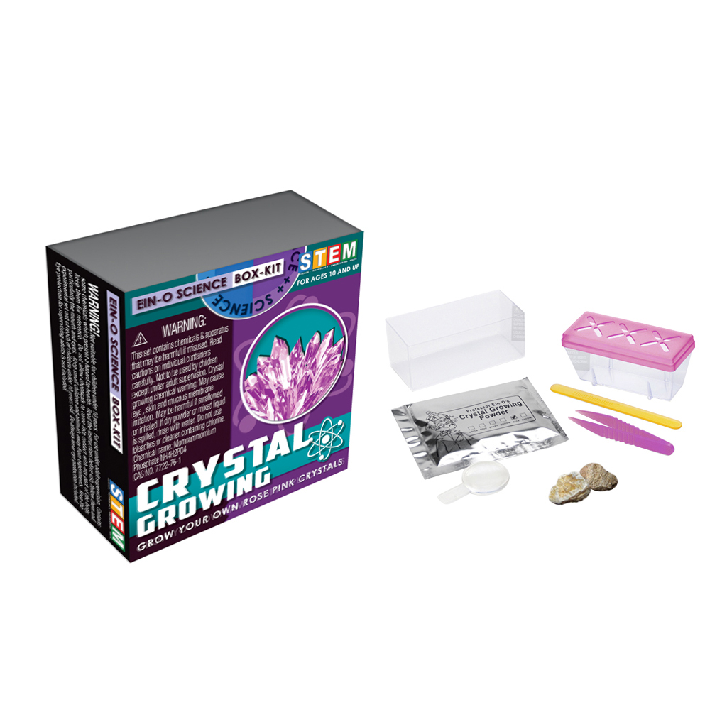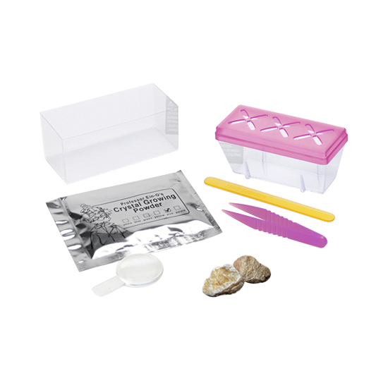 This crystal growing kit features all materials and information needed to grow lovely pink crystals. It allows users to use simple chemistry to recreate beautiful objects.