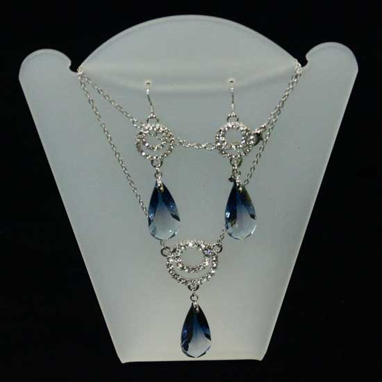 This crystal jewelry set includes a necklace and a pair of earrings. Sharing a uniform design, each of the three items boasts an elegant teardrop-shaped crystal for a luxurious touch. Above each crystal comes with two rings for added elegance.