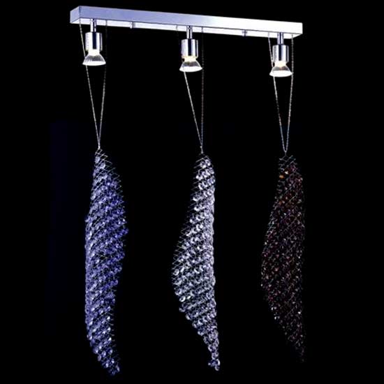 The crystal light highlights a splendid towel look that makes the hard metal going into a soft fabric look. Shiny crystals are hung on the lamp for added style. Colored or clear crystals are available for your option.