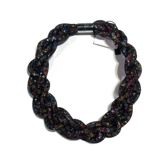 This necklace is exceptionally unique with its braided design. It is fully embellished with sparkling crystals in 5 different colors for a dazzling look. This flamboyant piece can make you stand out from the crowd.