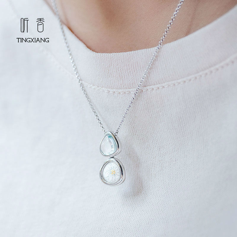 Currently, we have two version necklace, one with pearl while another one with blue crystal.