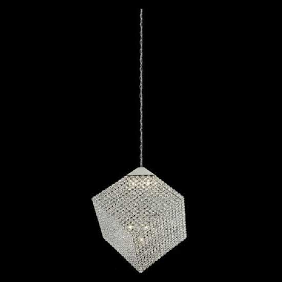 This refreshing pendant lamp features a cubic shaped design paved with glittering crystals. It offers an exquisite visual effect under light. This novel and attractive pendant lamp is ideal for home decoration.