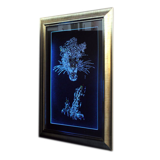 The crystal picture is especially designed for wall decoration in elegant style. It comes with an aluminum frame in golden-plated finish. The LED light source delivers uniform brightness to display this picture beautifully.