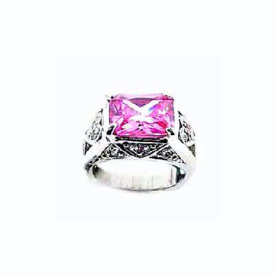 This is a crystal ring with a wide-band design. The ring features beautifully engraved patterns with a brilliant rectangular-cut CZ stone for added glamor. This crystal ring makes a pretty way to complement your jewelry collection.