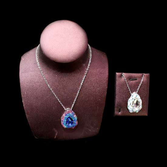 This gorgeous necklace is made of crystal and silver for an opulent touch. It is attached with an irregular pendant with shiny stones in contrasting colors. This fancy necklace makes a delightful gift for ladies.