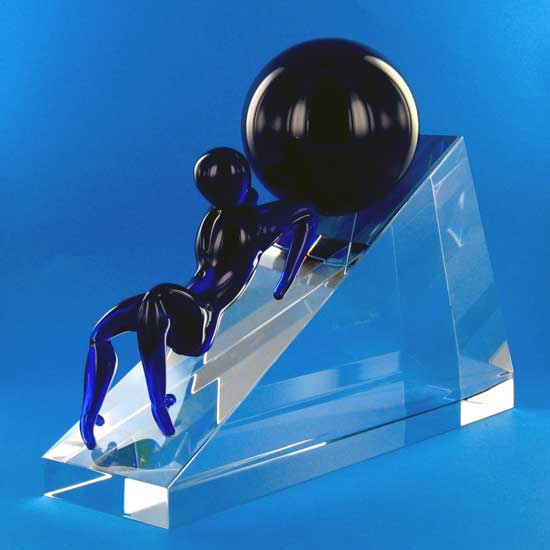 The glass decoration features a figure with a ball in black. It is exquisitely crafted with a clear glass slope. Add flair to your home decor with this glass decoration.