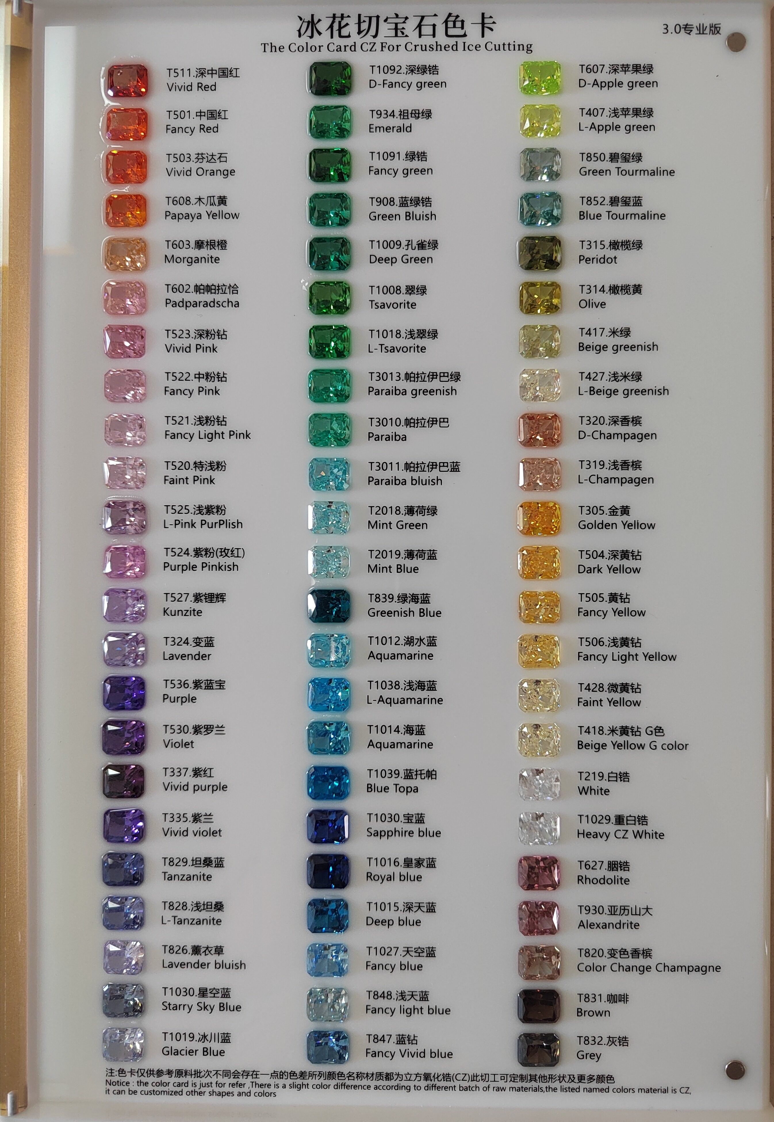 Cubic Zircon Ice Crushed Cut Color Card Color CZ