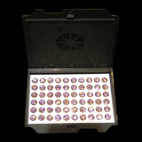 This is a box of cubic zirconia stones which are pale pink in colour. The sparkling stones are round in shape with brilliant cut to give extra fire.