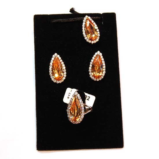 The dazzling ladies' earrings flaunt a studded design executed with skilled craftsmanship. The lustrous pear-shaped gemstones are embraced by sparkling cubic zirconia stones, emitting a glow of long-lasting shine with brilliant radiance. These ravishing cubic zirconia studded earrings are sure to take your breath away with their irresistible beauty.