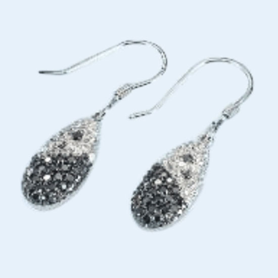 Displayed here is a pair of French hook earrings with detailed craftsmanship. The earrings are embellished with 76 pieces of 1.4mm round black and white cubic zirconia stones, showcasing a glamorous look. This elegant pair of cubic zirconia earrings will surely add a feminine touch to your look.