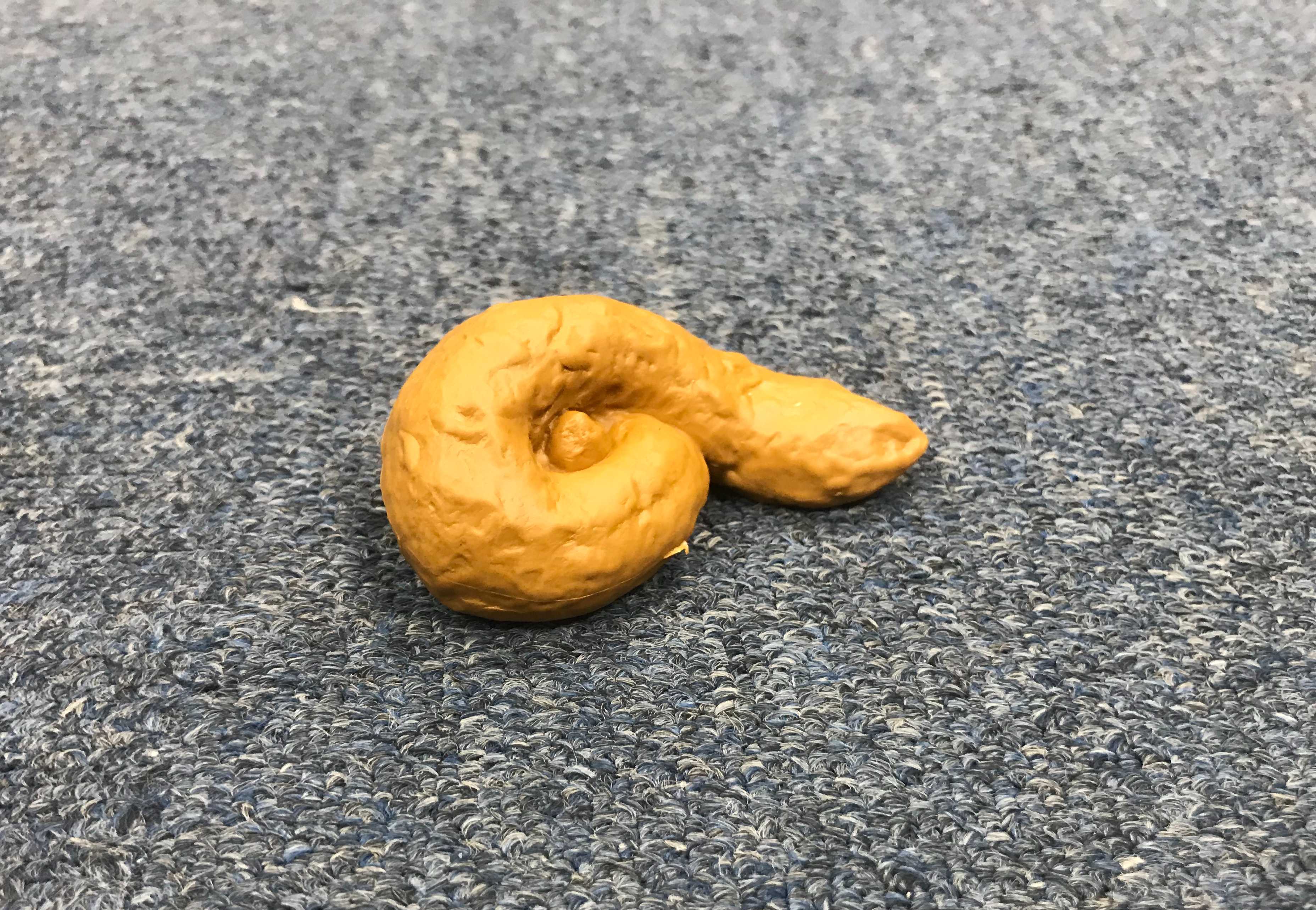 The Curly Curry Stool is like a dog's stool, and it is in curry-like yellow color. It can be placed wherever to be a horror prank or decoration.