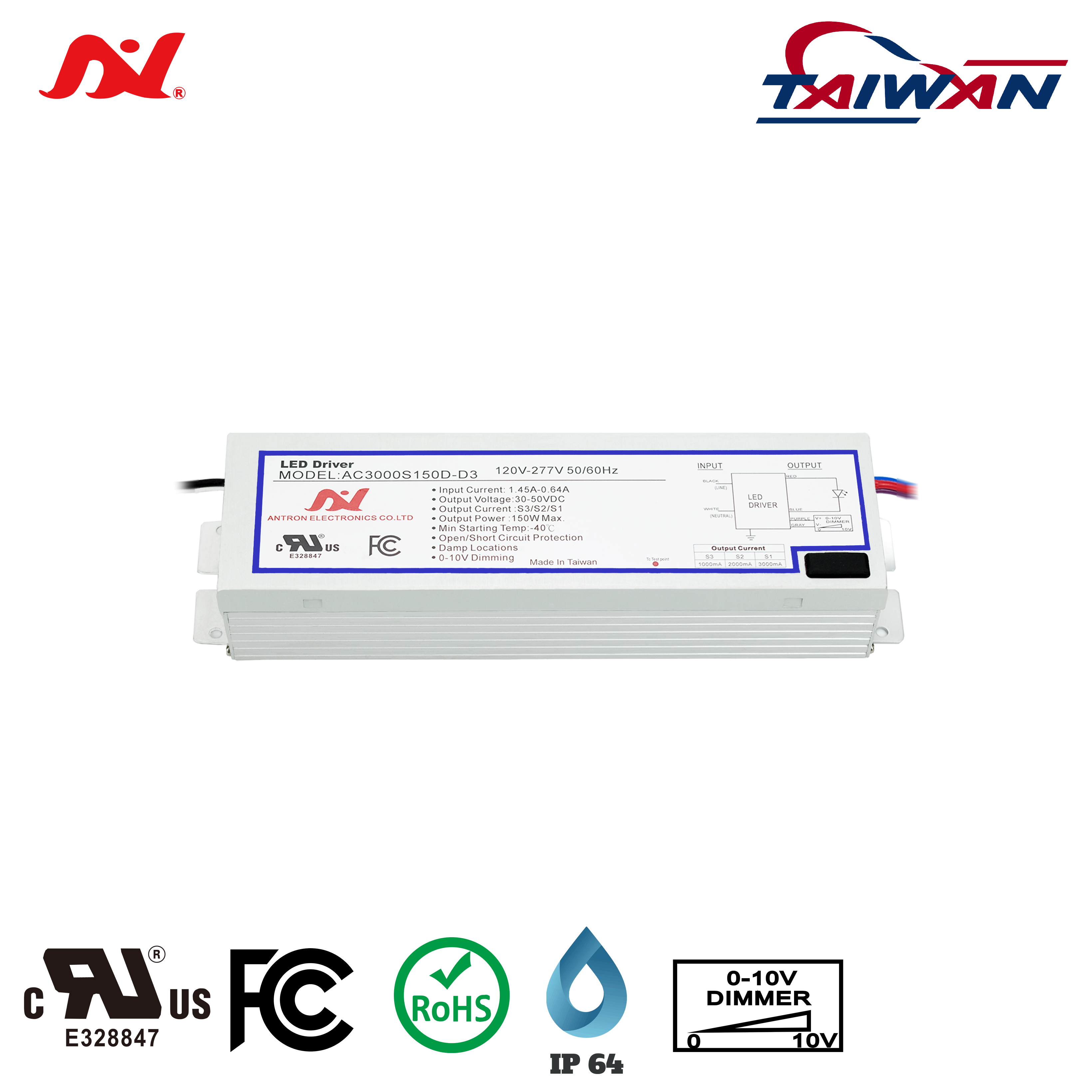 Antron current selectable LED driver series ranges from 40W to 150W with a special selling point: adjustable output current/wattage through DIP switch. Three or more output current/wattage options on a single compact LED driver that we customized for all your need.