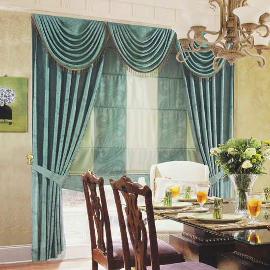 - Attached waterfall valance with tassel detailing.