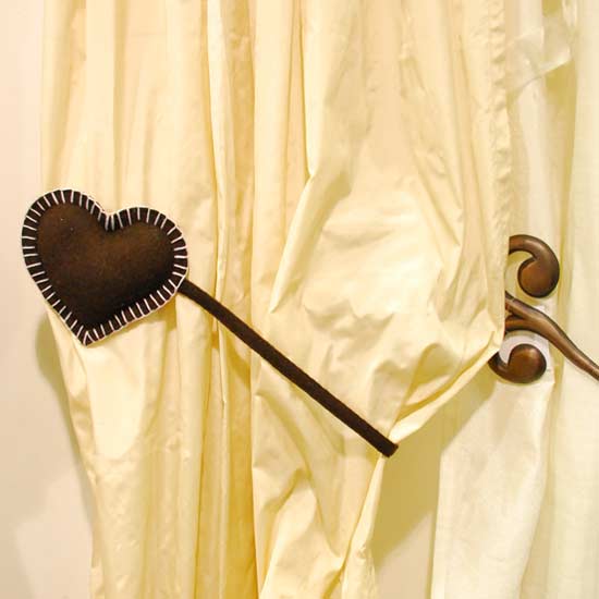 This curtain tie-back boasts a heart-shaped charm with contrastive stitching, offering a lovely touch. The tough thin strap offers a long lifespan. It makes an adorning item for curtains.
