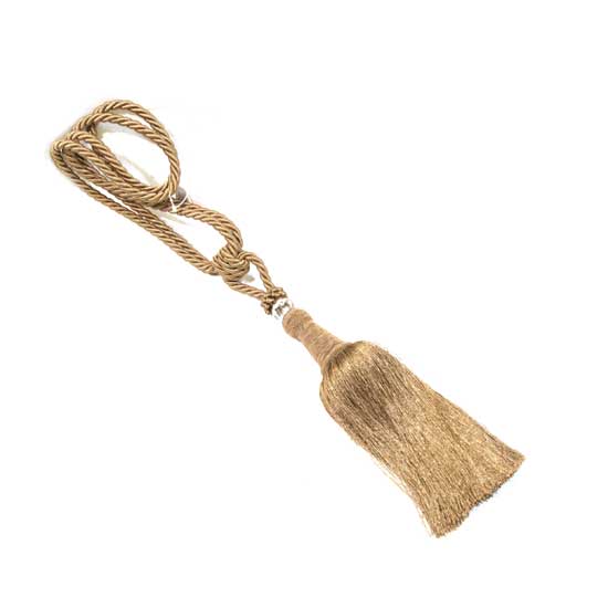 This curtain tieback is perfect to give your curtains a finished look, adding contrast and embellishment. Made from polyester fabric, the curtain tie-back showcases a smooth gold-toned finish. The tassel trimmings complete the design of the piece.